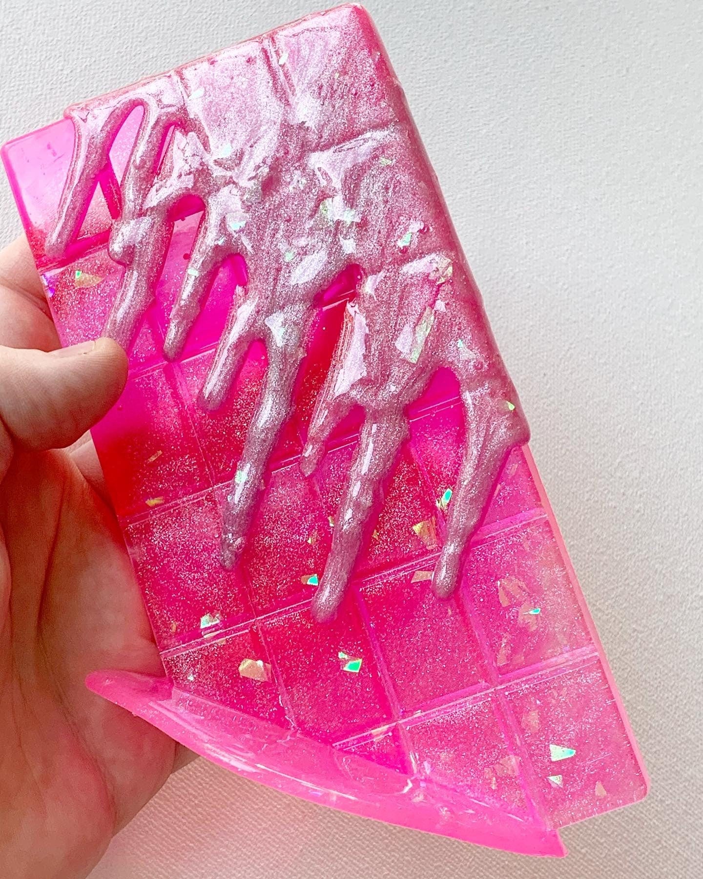 Neon Pink Melting Chocolate Bar Resin Sculpture
