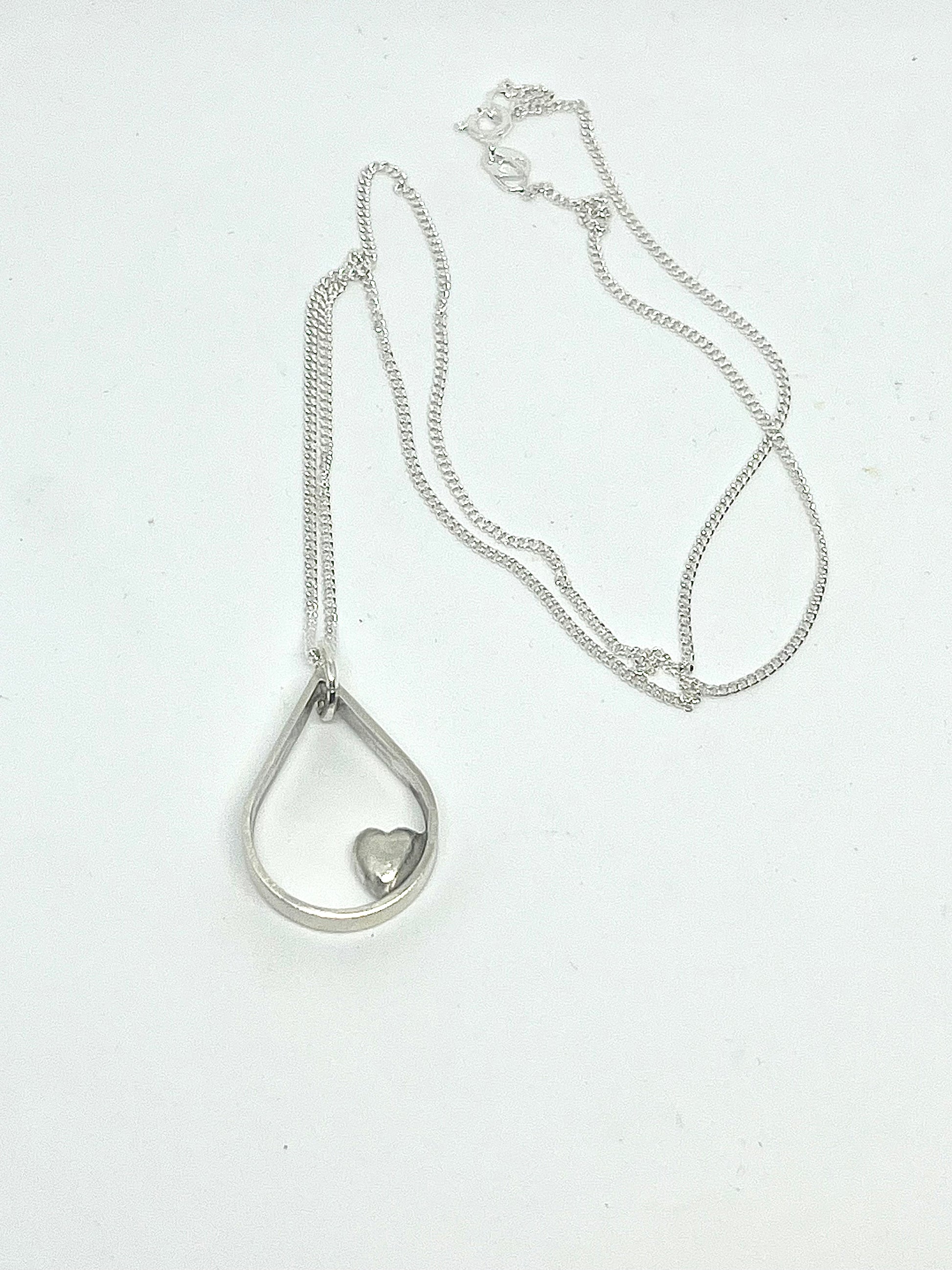 Silver drop pendant with heart